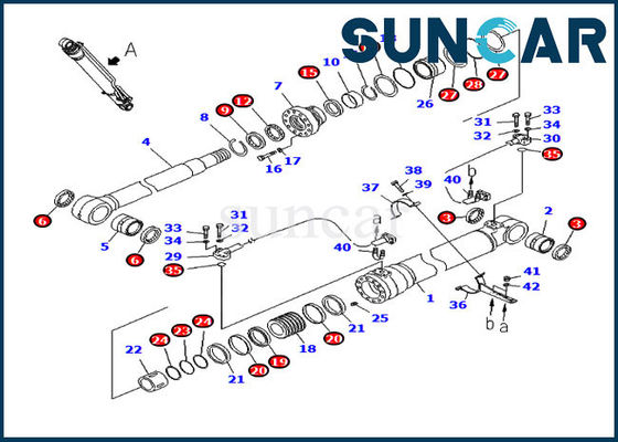 707-98-47710 Kit di manutenzione braccio 90 mm stelo 130 mm alesaggio Komatsu PC200LC-8 PC200LC-8E0 Kit guarnizioni cilindro